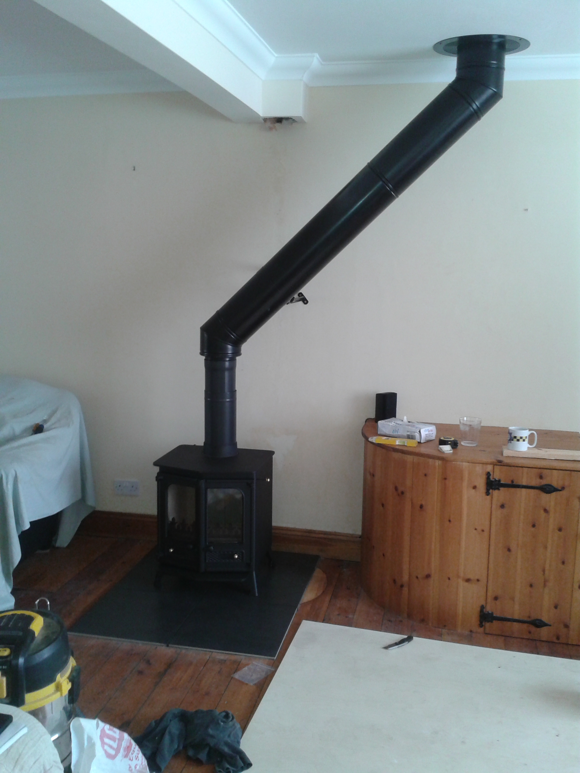 Fireplace rip out- installation of a Dru 44 stove.